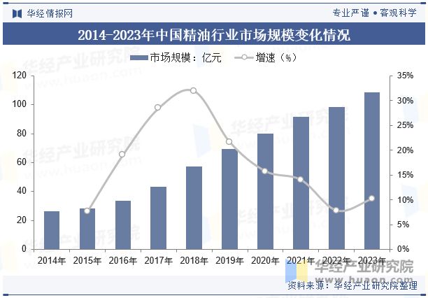 随着人们对健康和自然生活方式的重视增加,越来越多的消费者开始关注天然和有机产品,精油作为一种天然产品,符合这一趋势。人们更加注重预防疾病,精油在芳香疗法和自然疗法中的应用受到欢迎。电商平台的普及使得精油产品更容易被消费者获取,尤其是在一线和二三线城市之外的地区。通过电商平台,精油品牌能够覆盖更广泛的市场,增加了产品的可见度和销售量。2023年中国精油行业市场规模已超过100亿元。