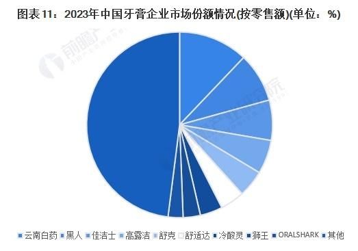分品牌来看,云南白药、黑人、佳洁士零售额占比分别为12.1%8.6%7.0%,位居前三。