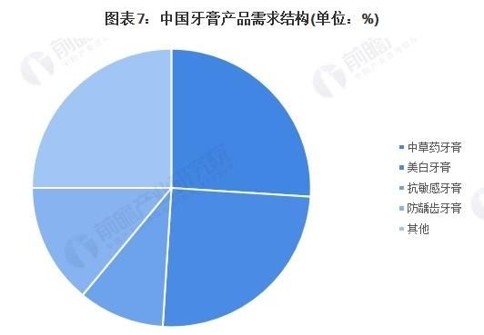 据中国口腔护理用品工业协会,从产品功效看,美白、中草药品类牙膏仍然是主要诉求,中药植物成分的牙膏份额达26%,美白类牙膏市场份额达25%,抗敏感牙膏市场份额达10%; 特色明显的产品市场拓展加快。