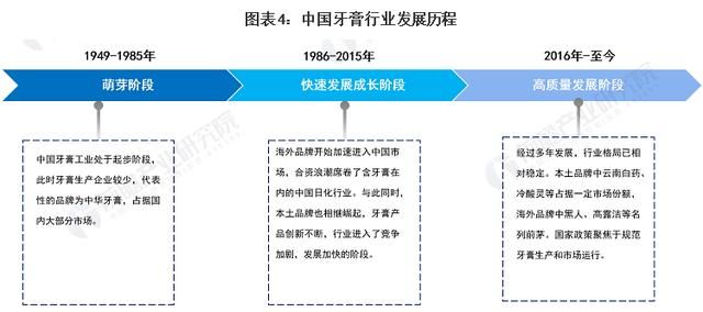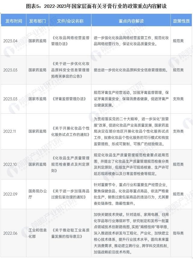 目前,我国牙膏行业相对成熟,已进入高质量发展阶段,特征表现为行业格局相对稳定,政策聚焦规范产品生产和市场运行。